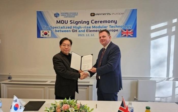 국내 최고층 모듈러 주택인 용인영덕 경기행복주택을 발주한바 있는 경기주택도시공사(GH)가 고층 모듈러 주택의 확대를 위해 해외 유력 전문업체와 기술교류에 박차를 가하고 있다. GH는 12∼13일(현지 시간) 영국 런던에서 영국 철골 모듈러 전문업체 엘리먼츠 유럽(E