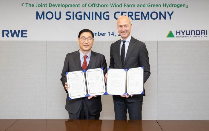 현대건설이 유럽 최대 에너지 기업과 손잡고 신재생에너지 발전사업 확장에 나선다. 현대건설은 14일(화) 서울 종로구 계동에 위치한 현대건설 본사에서 알더블유이 오프쇼어 윈드(RWE Offshore Wind GmbH, 이하 RWE)와 ‘해상풍력