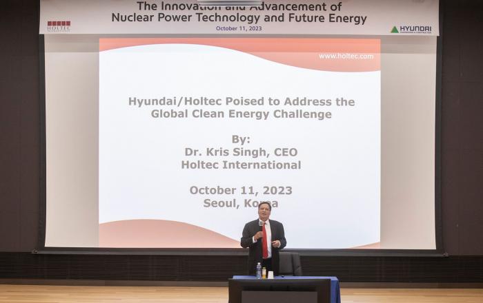 현대건설이 미국의 원자력 전문기업 홀텍 인터내셔널(Holtec International, 이하 홀텍)의 설립자이자 CEO인 크리스 싱(Dr. Kris Singh) 회장을 초청해, 에너지 시장을 선도할 기술력을 확인하고 기후 위기 등 시대적 당면 과제를 해결할