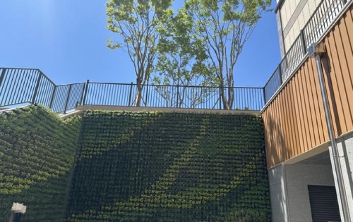 경기주택도시공사(GH)는 오는 6월 말 입주예정인 동탄2 신동포레 경기행복주택 주거단지에 조달청 혁신제품을 활용한 수직정원 벽면녹화를 조성하기로 했다고 30일 밝혔다. 동탄2 신동포레 경기행복주택내 상가(청년몰) 출입구 계단 벽면 약 100㎡ 면적에 벽면녹화가 조성