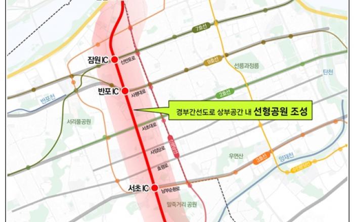 오세훈 서울시장이 역점을 두고 추진하는 경부간선도로 지하화, 상부공간 공원화 사업이 본격 추진된다. 서울시가 경부간선도로 지하화에 따른 상부공간의 활용방안을 마련하기 위한 용역에 착수했다. 지난 1월 경부고속도로 지하화 사업의 원활한 추진을 위해 서울시-국토부