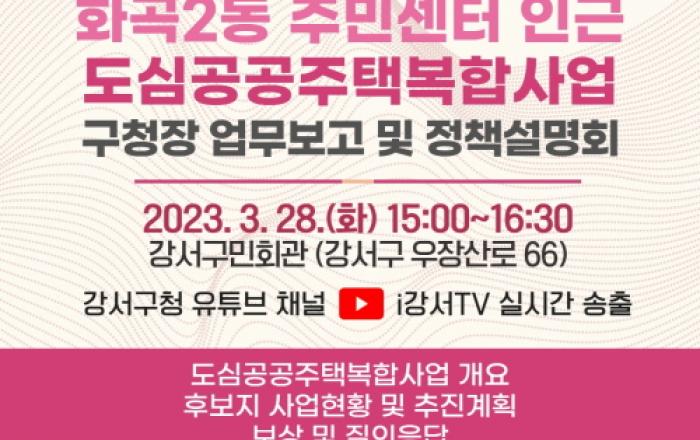 서울 강서구가 오는 28일 오후 3시 강서구민회관 우장홀에서 600여 명의 주민과 함께 '도심공공주택복합사업 정책설명회'를 개최하며 사업 추진 속도를 높인다. 김태우 구청장 1호 공약인 만큼 이번 주민설명회는 구청장이 직접 프레젠테이션을 할 예정이며, 그간의 발자