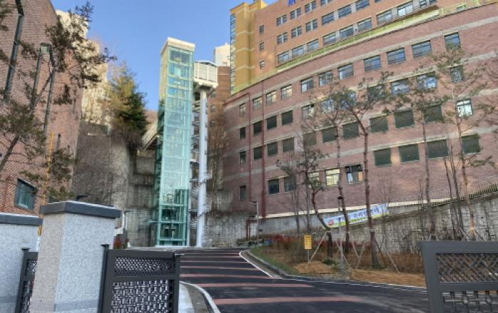 서울 금천구는 금동초교와 관악 벽산타운 아파트 5, 6단지를 잇는 수직형 엘리베이터와 보도교 설치를 완료하고 지난 27일 개통식을 개최했다. 시흥2동의 관악 벽산타운 아파트 5단지와 6단지는 주거지역이 산비탈에 조성된 탓에 주민들이 이동에 불편을 겪어왔다. 주민센터
