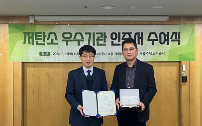 서울주택도시공사(SH공사)가 (사)도시재생안전협회 주관 제로에너지아파트 부문 저탄소 우수기관 인증을 취득했다. SH공사는 고덕강일 2BL 제로에너지아파트의 에너지자립률 60%, 탄소저감 연간 832톤을 달성, (사)도시재생안전협회로부터 제로에너지아파트 부문 저탄소