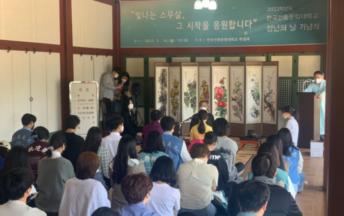 문화재청 한국전통문화대학교는 15일 ‘성년의 날’을 맞이하여 올해 성년이 되는 재학생 110명과 함께 한국전통문화대학교 안국동 별궁에서 ‘성년의 날’ 기념식을 개최한다. 한국전통문화대학교는 매년 전통 방식으로 성년을 맞는 학생들을 축하하고, 앞