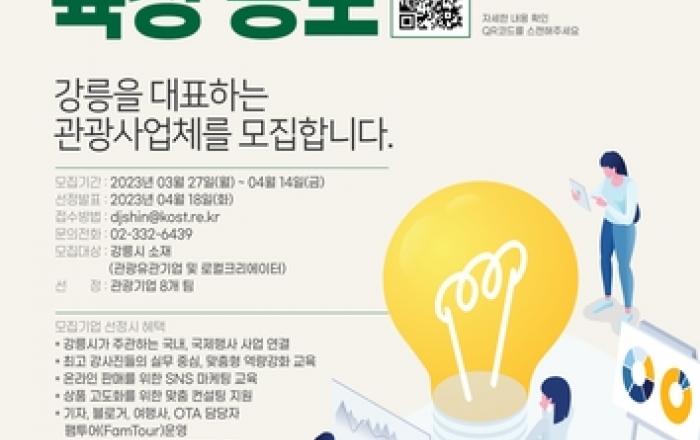 강릉시가 관광거점도시 육성사업의 일환으로 지역의 경쟁력 있는 관광 사업체 육성을 위한 '인바운드 여행사·관광기업 육성사업' 공모를 추진한다. 이번 공모사업은 지역업체 중 경쟁력과 발전 가능성이 있는 8개 업체를 선정해 인큐베이팅 프로그램, 홍보마케팅 컨설팅, 국내외