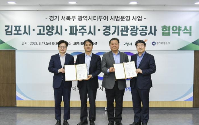 경기 김포시가 지난 17일 고양시와 파주시, 경기관광공사와 '경기 서북부 광역시티투어 시범사업을 위한 업무협약'을 체결했다. 이번 협약은 지난 2021년 경기관광공사가 주관한 '연계협력형 관광정책 공모사업' 선정에 따른 후속 조치. 이날 협약을 통해 김포시와