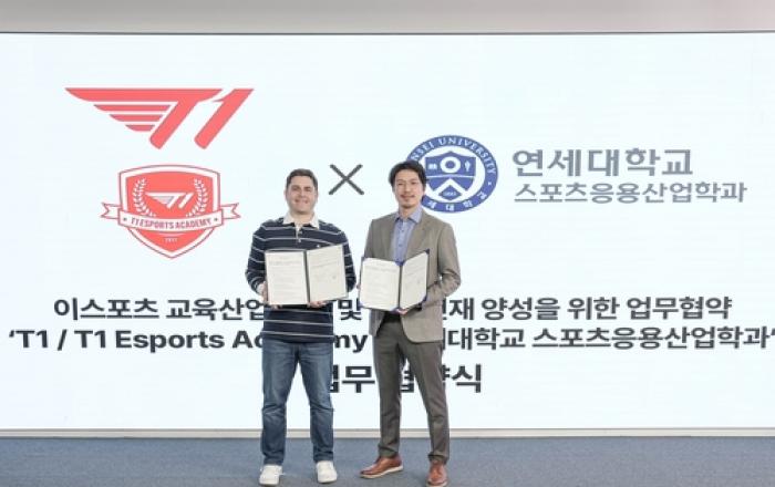 연세대학교 스포츠응용산업학과는 글로벌 e스포츠 전문 기업 T1 Entertainment & Sports(이하 T1)가 설립한 T1 e스포츠 아카데미와 e스포츠 협력을 위한 업무협약(MOU)을 3월 9일에 T1 사옥에서 체결했다. 양 기관은 이번 협약을 통해 ▲ e스