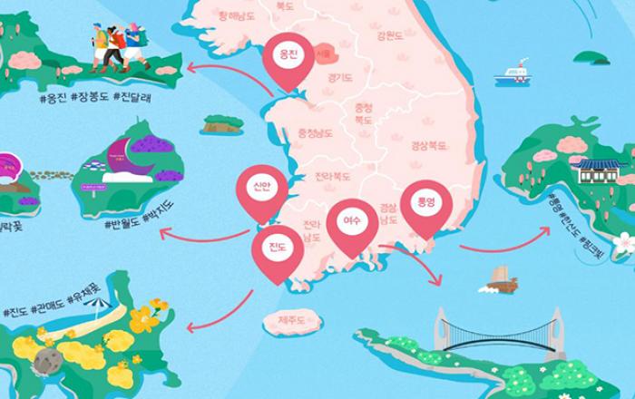 행정안전부가 봄을 맞아 다양한 볼거리와 즐길거리가 있는 섬 5곳을 ‘찾아가고 싶은 봄섬’으로 20일 선정했다. 이번에 선정한 곳은 장봉도(인천 옹징군), 반월도·박지도(전남 신안군), 하화도(전남 여수시), 관매도(전남 진도군), 한산도(경남 통영시)