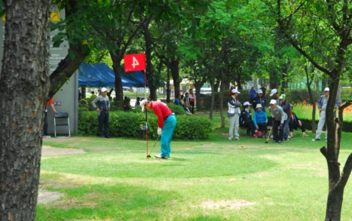 파크골프 경기 장면 서울특별시체육시설관리사업소에서 운영 중인 잠실파크골프장이 동절기 휴장을 끝내고 오는 4월 1일부터 운영에 들어간다. 2013년에 잠실종합운동장 내 체육공원 일대에 조성된 잠실파크골프장은 총 코스 길이가 500M이며 다양한 난이도의