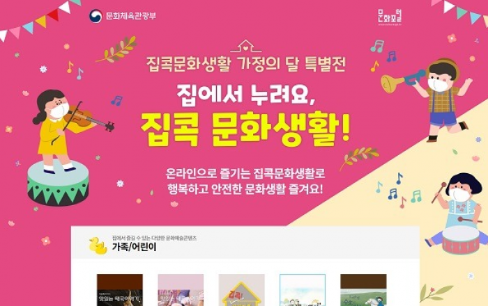 5월 가정의 달을 맞아 집에서도 국공립 문화예술기관이 제공하는 비대면 공연·전시·행사 등을 한 번에 즐길 수 있다.문화체육관광부는 한국문화정보원과 함께 오는 5일부터 30일까지 국공립 문화예술기관이 제공하는 비대면 공연·전시·행사 등을 집에서 즐길 수 있도록 통합안내