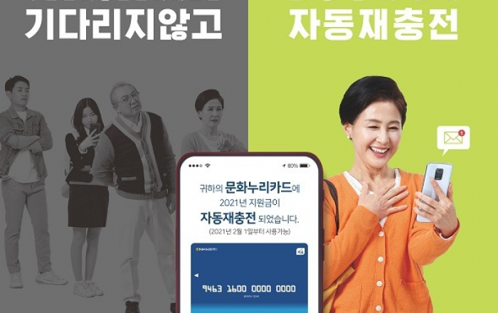 올해 통합문화이용권(문화누리카드) 발급도 사용도 이전보다 편해진다.특히 이용자 중 수급자격을 유지하면 별도 신청 없이 자동으로 지원금을 충전해 주는 ‘자동 재충전’ 제도를 처음 실시한다. 문화체육관광부는 18일 국민의 문화안전망을 확보하는 방향으로 개선된 올해