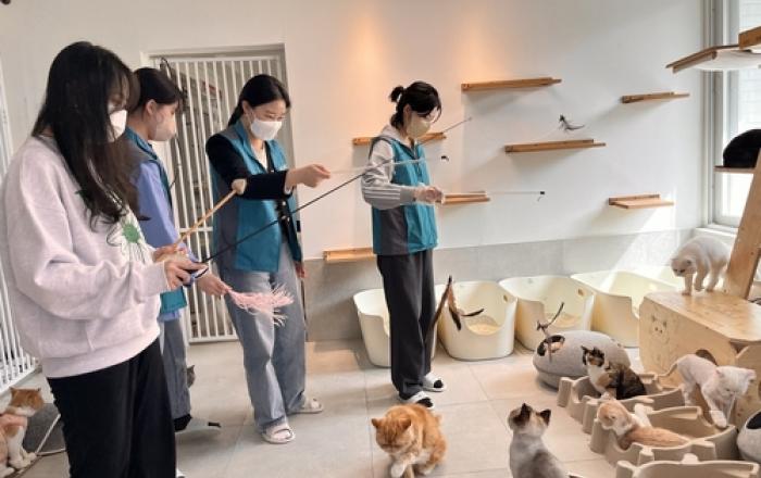 한국마사회 임직원 봉사단 '한국마사회 엔젤스'는 지난 17일 용산구 이촌동의 유기묘(猫) 보호소 '나비야사랑해'를 방문해 동물학대 피해를 입은 고양이를 돌보는 시간을 가졌다. '나비야사랑해'는 유기묘 등을 구조, 치료하는 구호단체로서 지난 2006년부터 운영돼 오고