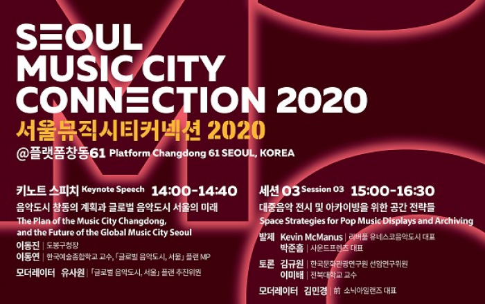 서울시는 13일(금) 플랫폼창동61(서울 도봉구 마들로 11길 74)에서 ‘세계 음악도시를 통한 도시재생의 담론’이라는 주제로「서울뮤직시티커넥션 2020」을 온라인으로 개최한다. 해외 연사들이 라이브로 참여하는 국제 컨퍼런스의 모든 일정은 플랫폼창동61 유튜브 채널과