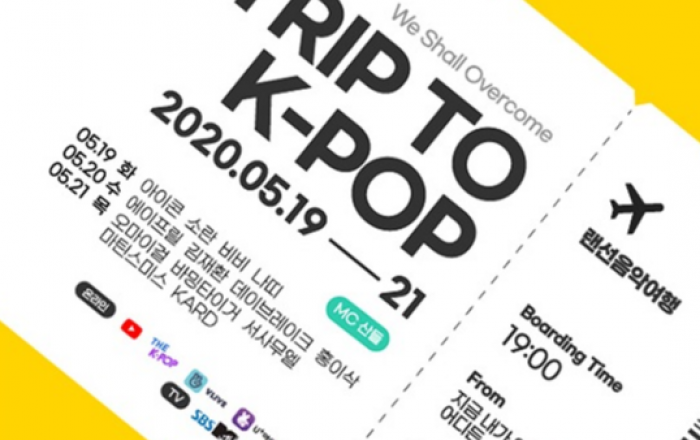 문화체육관광부(장관 박양우)와 한국콘텐츠진흥원(원장 김영준, 이하 콘진원)은 19일부터 21일까지 3일간 온라인 공연 ‘랜선음악여행 – 트립 투 케이팝(TRIP TO K-POP, 이하 트립 투 케이팝)’을 개최한다.‘트립 투 케이팝’은 코로나19 여파로 공연 무대를 잃