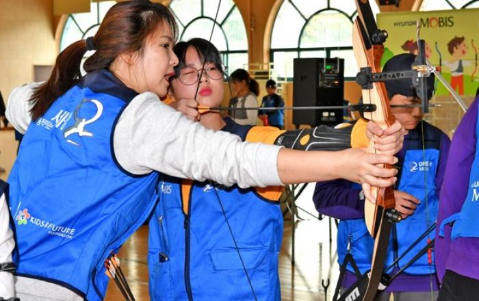 현대모비스가 본격적인 정규 양궁 교육에 나선다. 현대모비스는 올해 인터넷으로 공개 모집한 어린이 20명을 1기 ‘주니어 양궁 꿈나무’로 선정하고 연말까지 총 4회에 걸친 전문 양궁 수업을 실시한다고 31일 밝혔다.현대모비스는 지난 2년간 시범적으로 시행한 ‘주니어 양궁