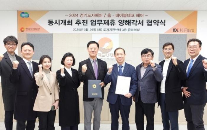 한국도자재단과 전시 전문 기업 리드케이훼어스 유한회사는 26일 한국도자재단 이천 도자지원센터에서 ‘2024 경기도자페어와 홈·테이블데코페어의 성공적인 동시 개최’를 위한 업무협약을 체결했다. 한국도자대단이 주최하는 ‘2024 경기도자페어(G-C