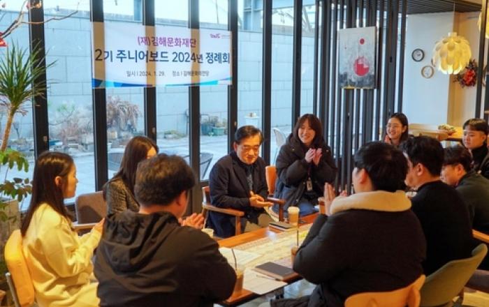 (재)김해문화재단이 지난 29일(월) 제2기 주니어보드 정례회를 개최했다고 밝혔다. 이날 행사는 최석철 대표이사와 20∼30대 직원으로 구성된 주니어보드 2기 위원들이 한자리에 모인 가운데 편하고 열린 분위기에서 이루어졌다. 회의에서는 여러 제안사항 및 안건에 대해