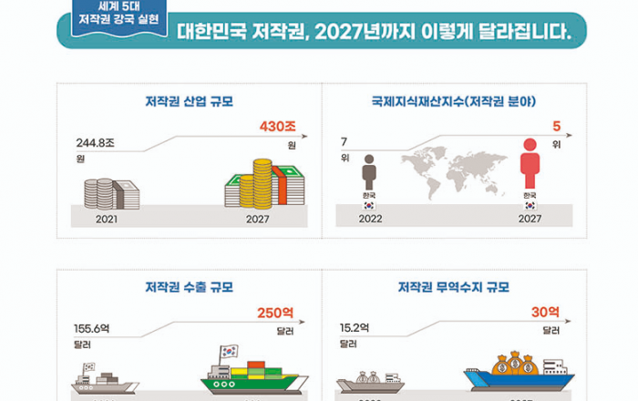 문화체육관광부는 27일 서울 서대문구 모두예술극장에서 저작권 정책 비전과 추진과제를 담은 ‘저작권 강국 실현, 4대 전략’을 발표했다. 문체부는 최근 플랫폼 경제의 확산과 케이-콘텐츠의 세계적 확장, 그리고 인공지능 등 신기술 발전이라는 빠르게 변화하는 환경에