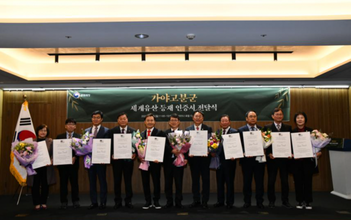 문화재청은 11월 27일 오전 11시 코리아나 호텔(서울 중구)에서 「가야고분군」의 유네스코 세계유산 등재 인증서 전달식을 개최했다. 세계유산「가야고분군」은 한반도에 존재했던 고대 문명 ‘가야’를 대표하는 7개 고분군(▲ 전북 남원 유곡리와 두