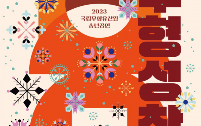 문화재청 국립무형유산원은 송년공연 <무형성찬無形盛饌>을 12월 9일 토요일 오후 4시, 국립무형유산원 얼쑤마루 대공연장(전북 전주시)에서 개최한다. <무형성찬無形盛饌>은 한국적 정서에 녹아있는 한(恨)과 신명을 젊음·동시대