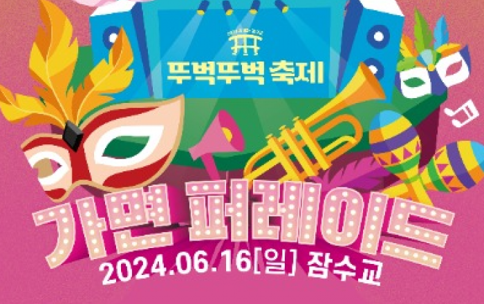 16일(일) 오후 3시 서울시의 한강 대표 축제 ‘차 없는 잠수교 뚜벅뚜벅 축제’에서 ‘가면퍼레이드’가 진행된다.‘가면 퍼레이드’는 시민, 퍼레이드 대원 등 200명이 총 120m 규모의 행렬을 이뤄 잠수교 1.5Km를 왕복 행진하며 축제의 흥겨움을 더하는 ‘차 없는