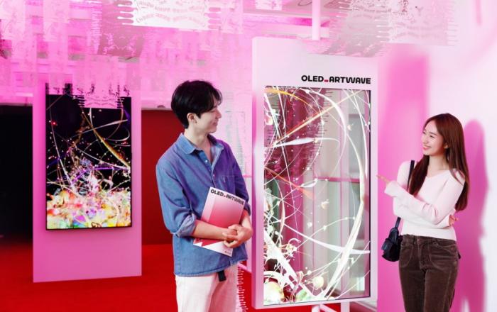 LG디스플레이가 이달 7일까지 서울 성수동 복합문화공간 ‘쎈느’에서 디지털아트 전시회 ‘아트 웨이브(Art Wave)’를 개최한다. 올해로 3회를 맞는 ‘아트 웨이브’는 예술과 기술의 결합을 통해 OLED의 차별적 가치를 알리고, 국내외 신진 작가에게 다