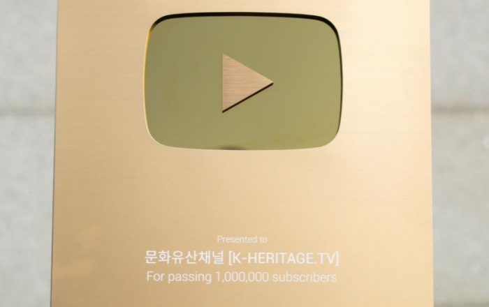 문화재청이 한국문화재재단과 운영하는 ‘문화유산채널’이 유튜브 구독자 100만 명을 넘김에 따라 유튜브 크리에이터 어워즈(YouTube Creator Awards)인 「골드버튼」(Gold Creator Award)을 수상했다. * 유튜브 크리에이터 어워