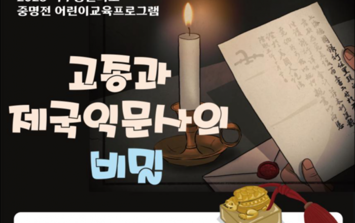 문화재청 궁능유적본부 덕수궁관리소는 오는 10월 14일(토), 21일(토), 28일(토) 총 3일에 걸쳐 덕수궁 중명전에서 초등학교 4~6학년을 대상으로 한 교육프로그램 「고종과 제국익문사의 비밀」을 운영한다. * 운영 시간: 1일 2회(오전 10시~11