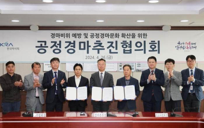 한국마사회가 서울·부경·제주경마공원을 순회하며 소속 조교사협회장, 기수협회장 등 경주마관계자들과 함께 '2024년 공정경마추진협의회'를 개최했다고 밝혔다. 전국 3개 경마공원의 경주마관계자들이 참여하는 공정경마추진협의회는 2018년 시작된 이래 매년 경마공정성 강화