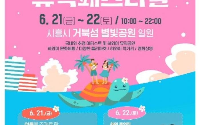 시흥시(시장 임병택)가 오는 6월 21일과 22일 이틀간 오전 10시부터 오후 10시까지, 거북섬 별빛공원 일원에서 ‘2024 알로하 뮤직 페스티벌’을 개최한다.‘2024 알로하 뮤직 페스티벌’은 ▲국내외 유명 하와이안 뮤지션과 훌라댄서들의 공연 ▲전국 훌라댄스팀의 거