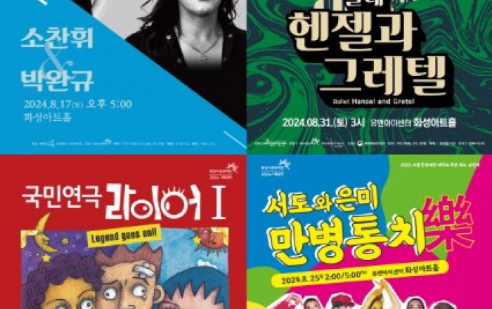 (재)화성시문화재단(대표이사 김신아)은 화성‧반석‧누림아트홀과 동탄복합문화센터 야외공연장의 8월~9월 기획공연 라인업을 공개하고, 오는 18일부터 공연 티켓 판매를 시작한다. 매 시즌마다 다양한 볼거리와 수준 높은 공연으로 화성시민의 사랑을 받고 있는 화성시문화재단은