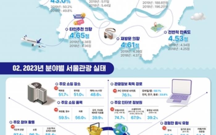 서울시와 서울관광재단은 2023년 한 해 서울을 방문한 외국인을 대상으로 한 관광실태조사의 결과를 발표했으며, 코로나19 이전보다 전반적으로 관광객의 체류기간, 소비금액 등이 증가한 것으로 나타났다. 이번 실태조사는 서울을 방문한 외국인 관광객의 관광 인식, 활동