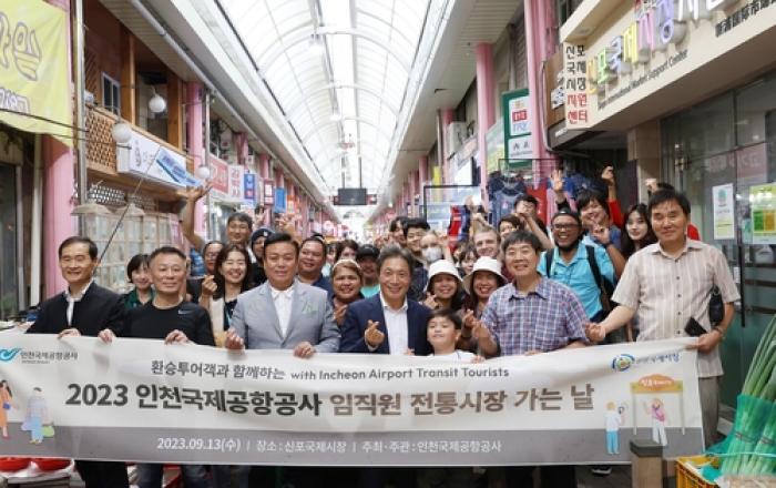 인천국제공항공사는 외국인 환승객들에게 한국의 문화를 알리고 지역경제 활성화를 지원하기 위해 지난 13일 '인천공항 환승객과 함께하는 신포국제시장 방문행사'를 진행했다고 밝혔다. 공사는 지난 2020년 7월 신포국제시장 상인회와 '1기관-1시장 자매결연 협약'을 체결