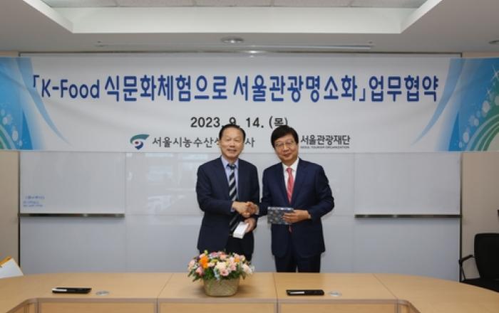 서울관광재단은 서울시농수산식품공사와 K-food 식문화 체험을 통한 가락시장의 서울관광 명소화를 위한 업무협약을 체결했다고 밝혔다. 지난 14일 송파구 가락동에 위치한 서울시농수산식품공사 사옥에서 길기연 서울관광재단 대표이사, 문영표 서울시농수산식품공사 사장 등 양