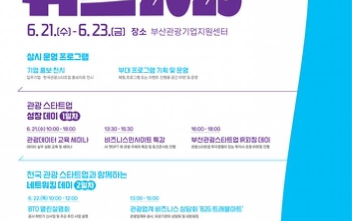 부산광역시와 부산관광공사, 부산관광기업지원센터(이하 센터)는 오는 21일부터 3일간 센터(부산 영도구 봉래나루로 33)에서 전국 관광기업 비즈니스 협업주간 'B투게더 위크 2023'을 개최한다고 16일 밝혔다. 전국의 관광 스타트업들이 부산에 모여 관광산업의 새로운