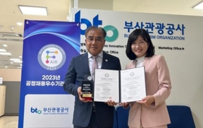부산관광공사(이하, 공사)는 한국경영인증원(KMR)으로부터 2023년 공정채용 우수기관 인증을 부산시 공공기관 중 최초로 획득해 지난 20일 수여식을 개최했다고 밝혔다. 공정채용 우수기관 인증은 채용에 편견적 요소를 배제하고 직무능력 중심으로 공정채용을 모범적으로