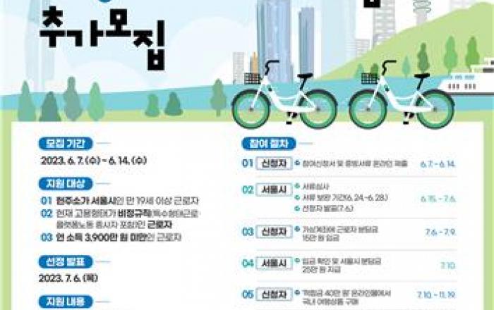 서울시와 서울관광재단은 오는 7일부터 14일까지 '서울형 여행바우처 지원' 사업 참여자 500명을 추가 모집한다. '서울형 여행바우처 지원' 사업은 상대적으로 휴가 여건이 열악한 비정규직 및 특수형태근로·플랫폼 노동종사자에게 휴가비를 지원하는 제도이다. 선정된
