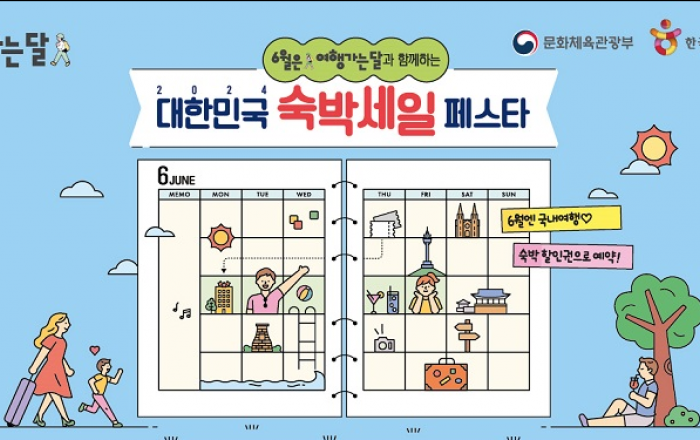 ‘6월 여행가는 달’에도 비수도권 지역 숙박시설을 대상으로 2만 원 이상 7만 원 미만 숙박상품을 예약하면 2만 원 할인권, 7만 원 이상이면 3만 원 할인권을 지원한다. 특히 5월 28~30일에는 12개 광역시도에서 7만 원 이상 숙박상품을 예약하면 5만 원을 할인하