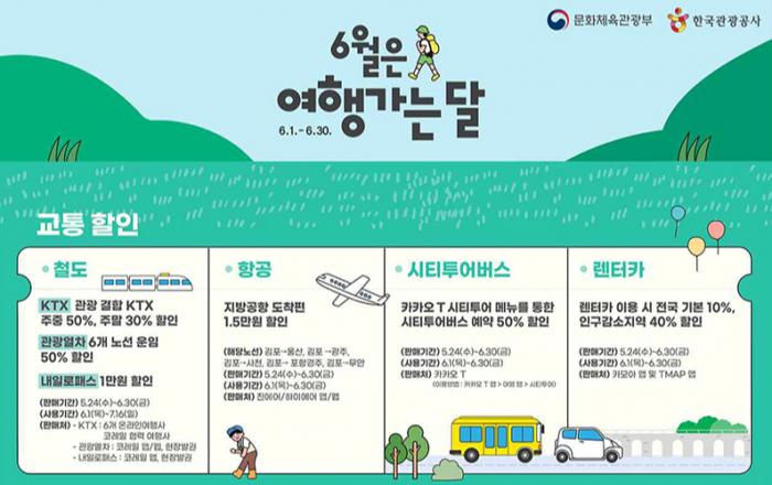 문화체육관광부는 한국관광공사와 함께 6월 한달 간 ‘2023년 여행가는 달’을 추진한다고 17일 밝혔다. 올해 ‘여행가는 달’의 주제는 ‘대한민국은 절찬 여행 중’이다. 대한민국 구석구석 여행으로 나만의 여행 버킷리스트를 완성하고 영화처럼 멋진 여행의