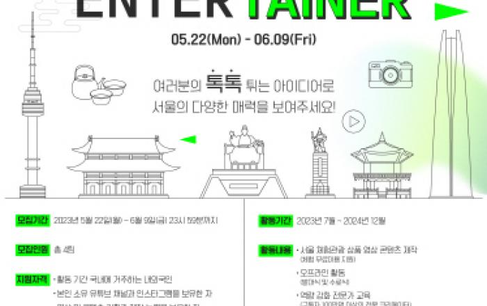 서울시와 서울관광재단은 5월 22일부터 6월 9일까지 서울 공식 체험관광 '원모어트립(One More Trip)'에서 서울의 다양한 매력을 함께 알릴 2023 투어테이너를 모집한다, 투어테이너란 관광업을 뜻하는 '투어리즘(Tourism)'과 '엔터테이너(Entert