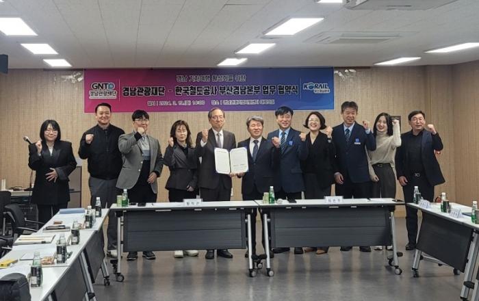 경상남도와 경남관광재단은 19일 한국철도공사 부산경남본부와 경남 기차여행 활성화를 위한 업무 협약을 체결했다고 밝혔다.이번 협약을 통해 양 기관은 공동 프로모션을 진행해 대중교통을 이용한 경남의 지역축제 방문 활성화에 나선다. 3~5월 프로모션 기간 축제 방문객 총 5