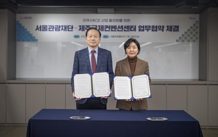 서울관광재단)과 제주국제컨벤션센터는 15일 서울-제주의 상생협력과 MICE 산업 활성화를 위한 업무협약(MOU)을 체결했다. 본 협약을 계기로 양 기관은 향후 MICE 산업 육성 및 발전을 위한 공동사업을 발굴하고 MICE 산업의 ESG 경영을 확산하는 등 적극적