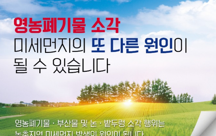 경기도가 도내 농촌 지역 불법 소각 방지를 위한 합동 점검단을 이번 달까지 집중 운영한다고 13일 밝혔다.이는 미세먼지 저감을 위한 계절 관리제의 일환으로, 도는 작년 12월부터 농정 ‧ 환경 ‧ 산림부서로 구성된 합동 점검반을 통해 도내 농촌 지역 불법 소각 방지를
