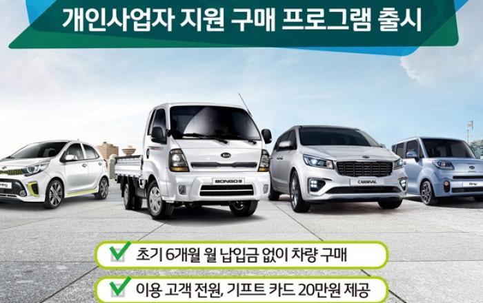 기아자동차는 개인 사업자 고객의 부담을 경감하고 소비 활성화에 기여하고자 ‘개인 사업자 지원 구매 프로그램’을 출시했다고 4일 밝혔다.‘개인 사업자 지원 구매 프로그램’은 개인 사업자 비중이 높은 대표 차종을 대상으로 △초기 6개월 월 납입금이 없고 △기프트카드 증정