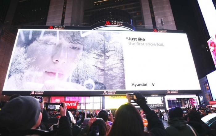 현대자동차가 21일(현지시각) 미국 뉴욕 타임스퀘어에서 방탄소년단이 출연한 ‘글로벌 수소 캠페인’ 영상을 최초로 공개했다.이번 영상은 21일 저녁, 하루 유동인구 약 150만 명에 달하는 세계 상업, 금융, 문화의 중심지 뉴욕 타임스퀘어 중심에 위치한 메리어트 마퀴즈