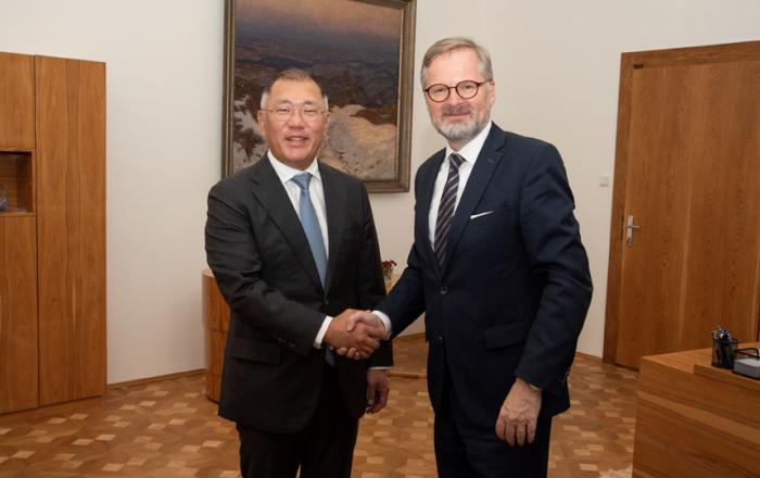현대자동차그룹은 정의선 회장이 27일(현지 시간) 체코 프라하 총리실에서 페트르 피알라(Petr Fiala) 총리를 예방하고, 부산세계박람회 유치 지지 요청과 함께 현대자동차 체코공장의 전동화 체제 전환 등 상호 협력방안에 대해 논의했다고 28일 밝혔다.체코는 올해 하