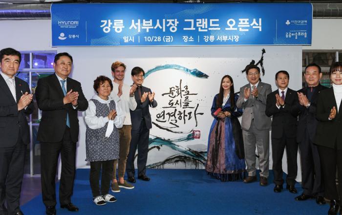 현대자동차그룹이 지역 상권 활성화를 목표로 강릉시와 손잡고 약 3년에 걸쳐 진행한 지역재생사업이 결실을 맺었다.현대자동차그룹은 28일(금) 강릉 서부시장에서 권성동 국회의원, 김종욱 강릉시 부시장, 현대자동차그룹 공영운 사장, 현대자동차그룹 양진모 부사장, 사회복지공동