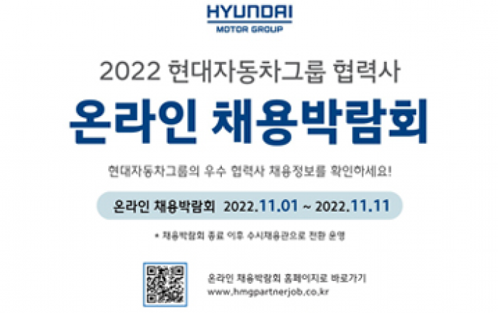 현대자동차그룹은 코로나19 여파로 위축된 자동차산업 고용에 활기를 불어넣고, 협력사들과 새로운 동반성장 모델을 구축하기 위해 ‘2022 현대자동차그룹 협력사 온라인 채용박람회’를 개최한다고 31일(월) 밝혔다.2012년부터 이어온 현대자동차그룹 협력사 채용박람회는 대기