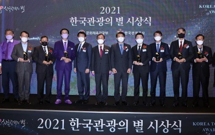 코로나19로 지친 국민을 위로한 ‘2021 한국관광의 별’ 8개가 선정됐다.문화체육관광부는 21일 오후 서울 신라호텔에서 한국관광공사와 함께 ‘2021 한국관광의 별 시상식’을 개최했다.▲ 오영우 문화체육관광부 제2차관이 21일 서울 중구 신라호텔 영빈관에서 열린 한국